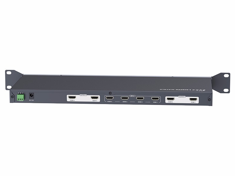A Matriz HDMI 4x4, LKV414, da LENKENG, permite que qualquer uma das 4 portas HDMI de entrada se conecte com qualquer uma das 4 portas de saída HDMI, funcionando também como seletor ou distribuidor. Este equipamento possui controle remoto, sensor de IR e software de gerencimanto da matriz para controlar via Lan (RS232). Além desse diferencial, a Matriz também pode ser controlada pelo painel frontal, controle remoto e RS232. O sensor de IR possibilita controlar os dispositivos HDMI através de seus respectivos controles, sem a necessidade de estar na frente do dispositivo, controlando apenas a partir do sensor plugado na matriz.